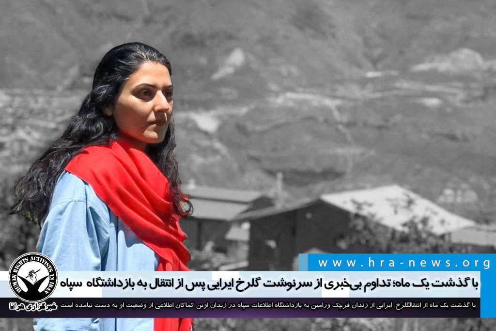 به گزارش خبرگزاری هرانا، ارگان خبری مجموعه فعالان حقوق بشر در ایران، امروز دوشنبه ۲۲ دیماه ۱۳۹۹، با گذشت یک ماه از انتقال همراه با ضرب و شتم گلرخ ابراهیمی ایرایی، زندانی سیاسی از زندان قرچک ورامین به بازداشتگاه اطلاعات سپاه موسوم به بند ۲ الف زندان اوین کماکان اطلاعی از وضعیت او به دست نیامده است.